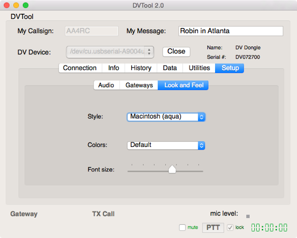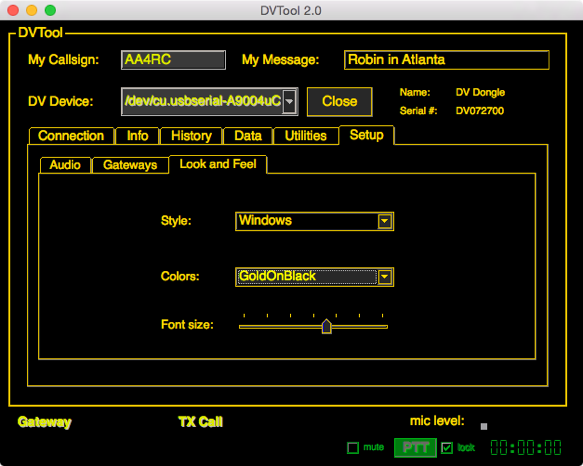You can customize the look and feel of DVTool using the “Look and Feel” subtab under the “Setup” tab. Try changing the Style and Colors to see the options. You can also change the font size using the slider bar. This can help when you change the operating system default font size.